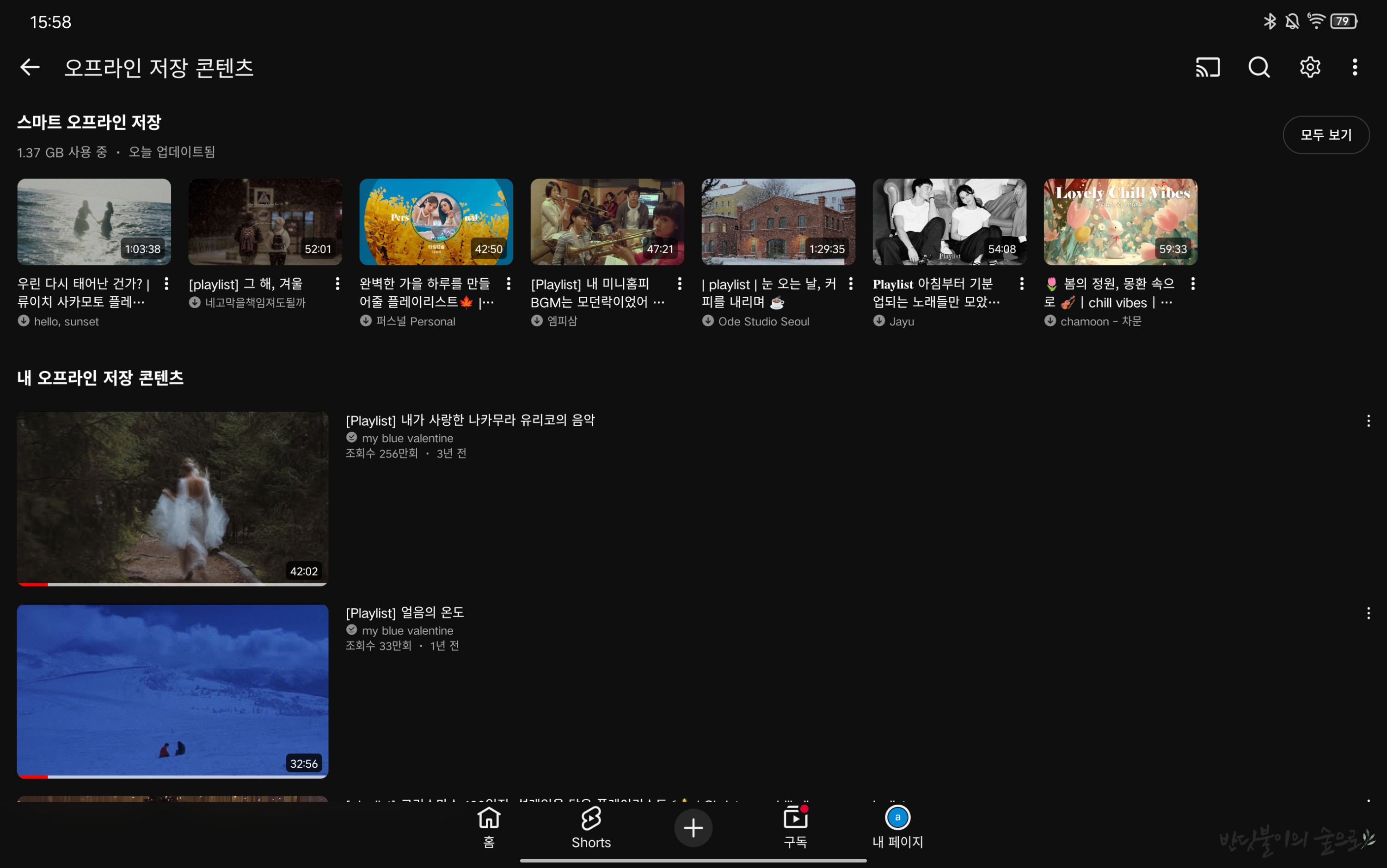 아래와 같은 사진처럼 걱정 없이 오프라인 저장 콘텐츠를 즐기시길.