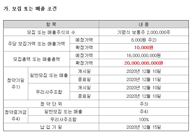 공모가가 1만원으로 결정된 내용도 나와있네요.