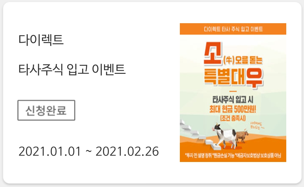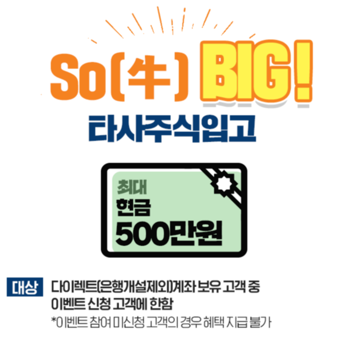 타사 주식 입고 이벤트. 최대 현금 500만원 지급 이벤트